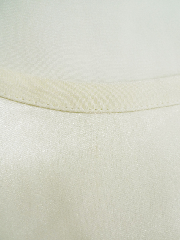 光沢感のある生地に、デコルテが綺麗に見える開きが深めのネックライン。シンプルとはいえ、女性らしく且つエレガントな一着。