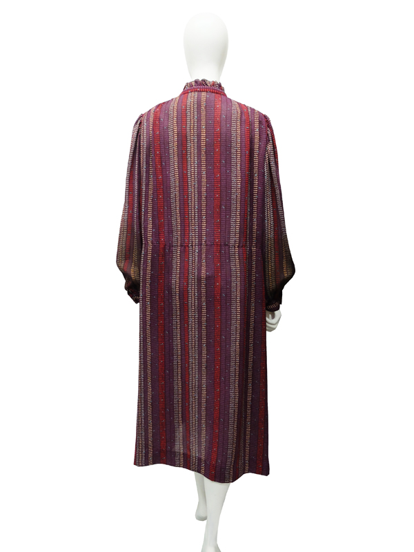 ドットが並び、ストライプ状の模様になったテキスタイルのこちらのドレス。